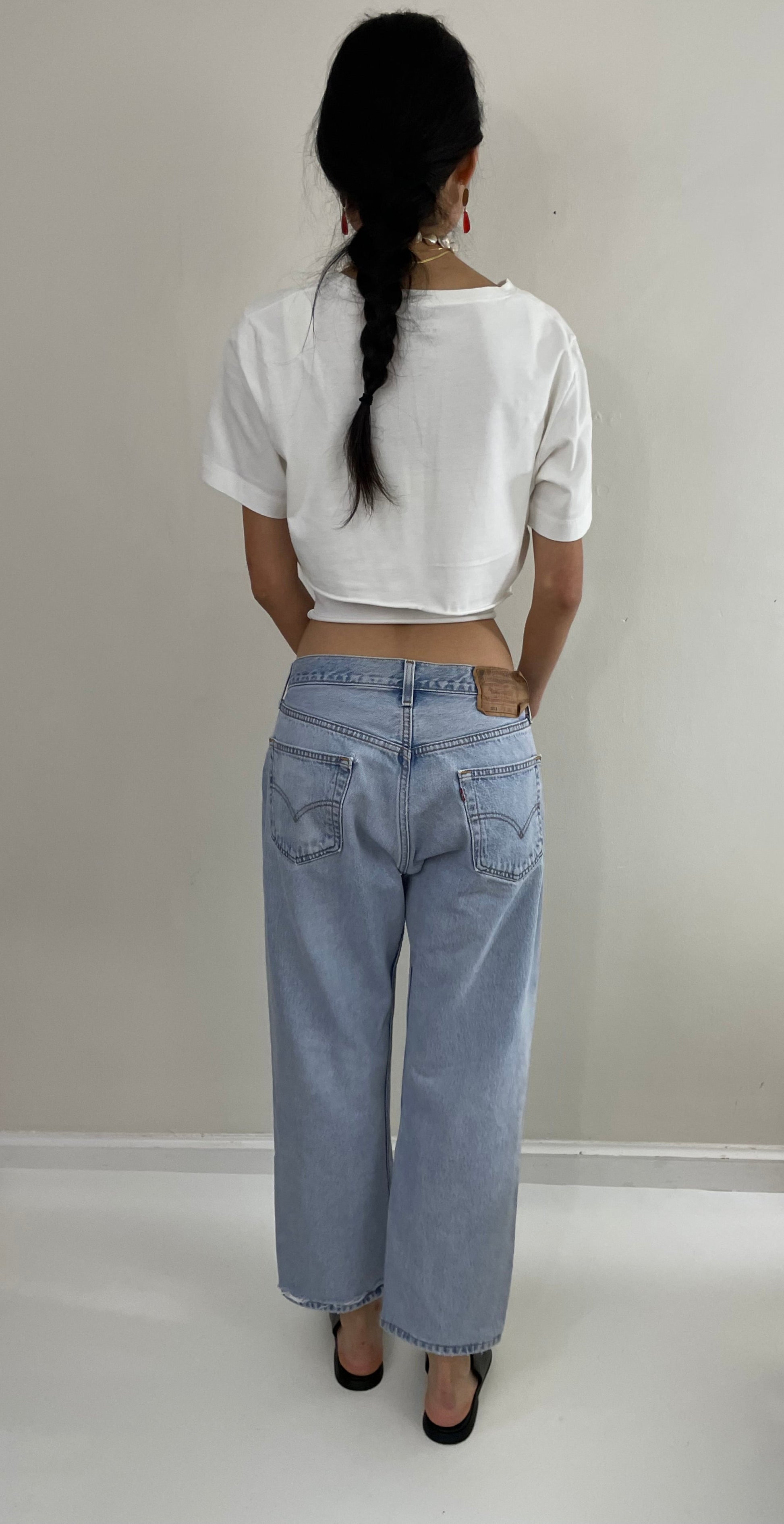 Vintage 80s Levis 501 button fly boyfriend jeans made in USA.