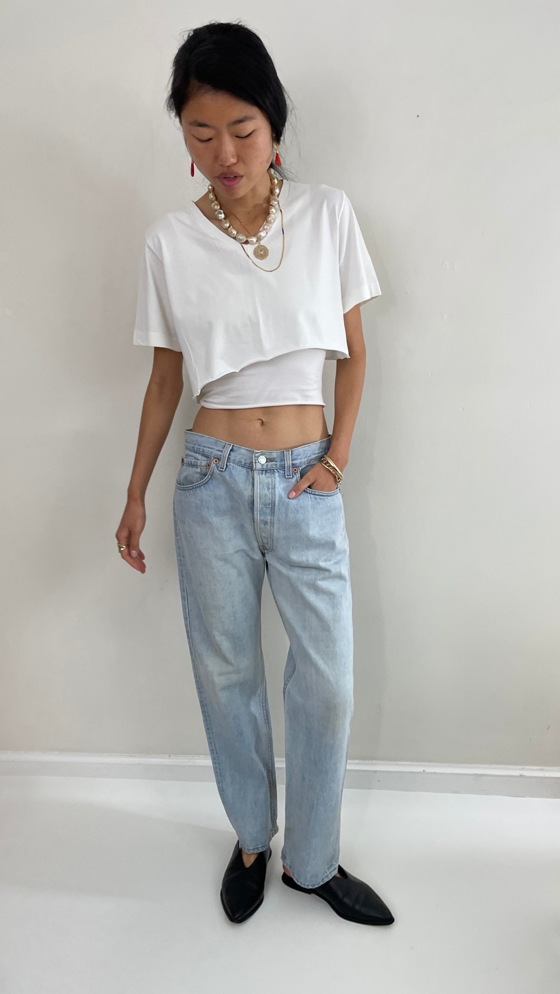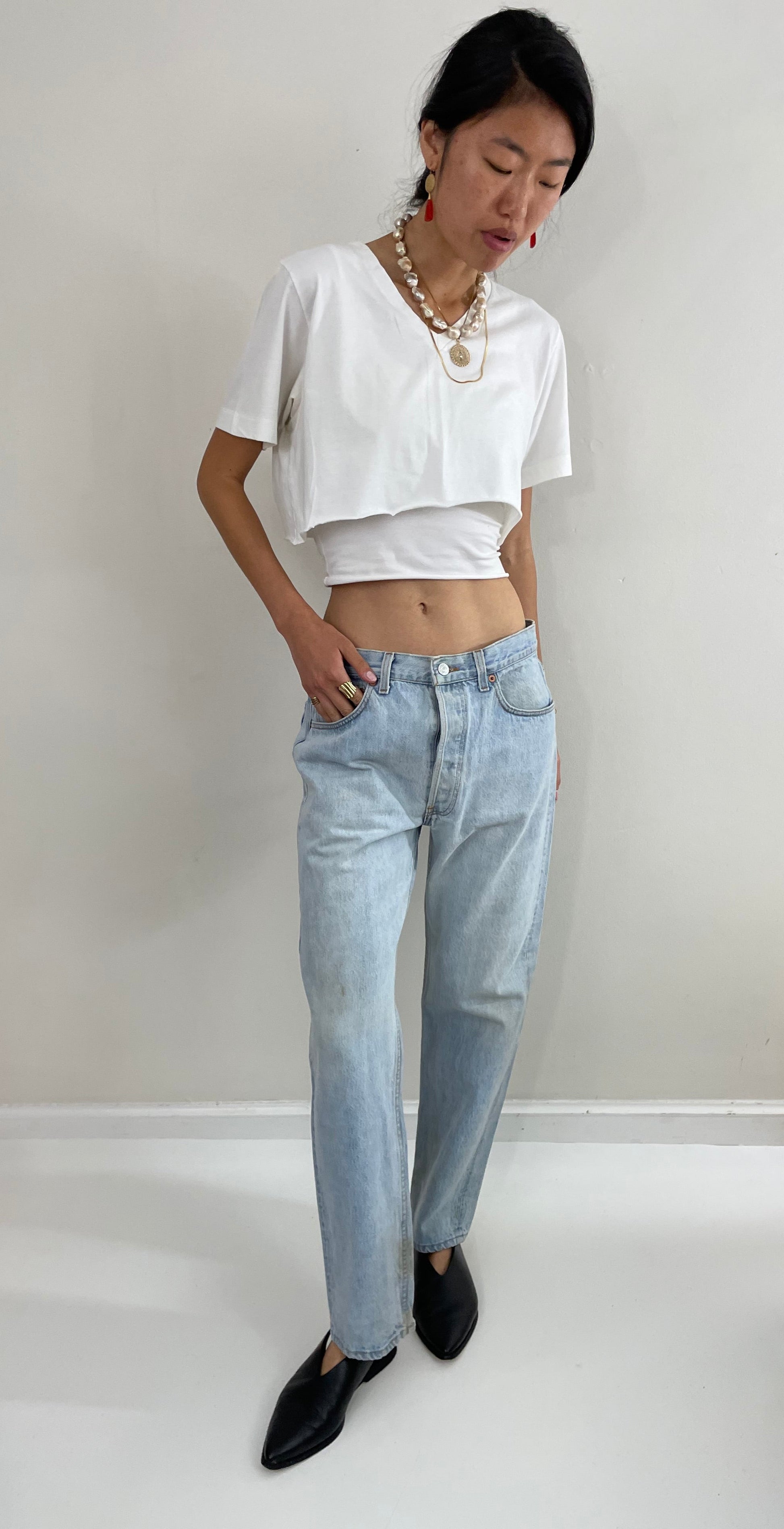 Vintage 80s Levi's 501 jeans with soft, naturally and evenly faded stonewash denim.