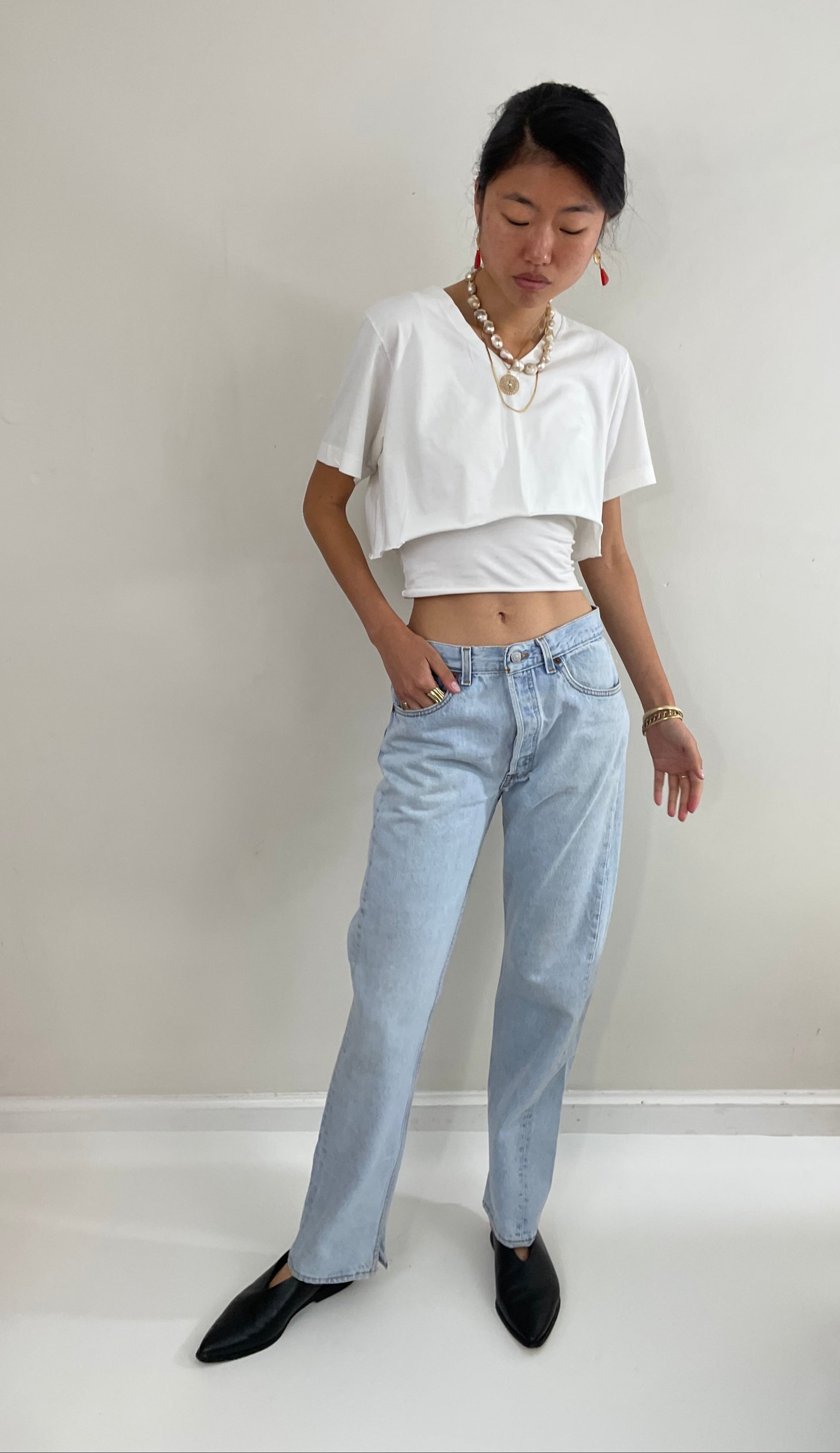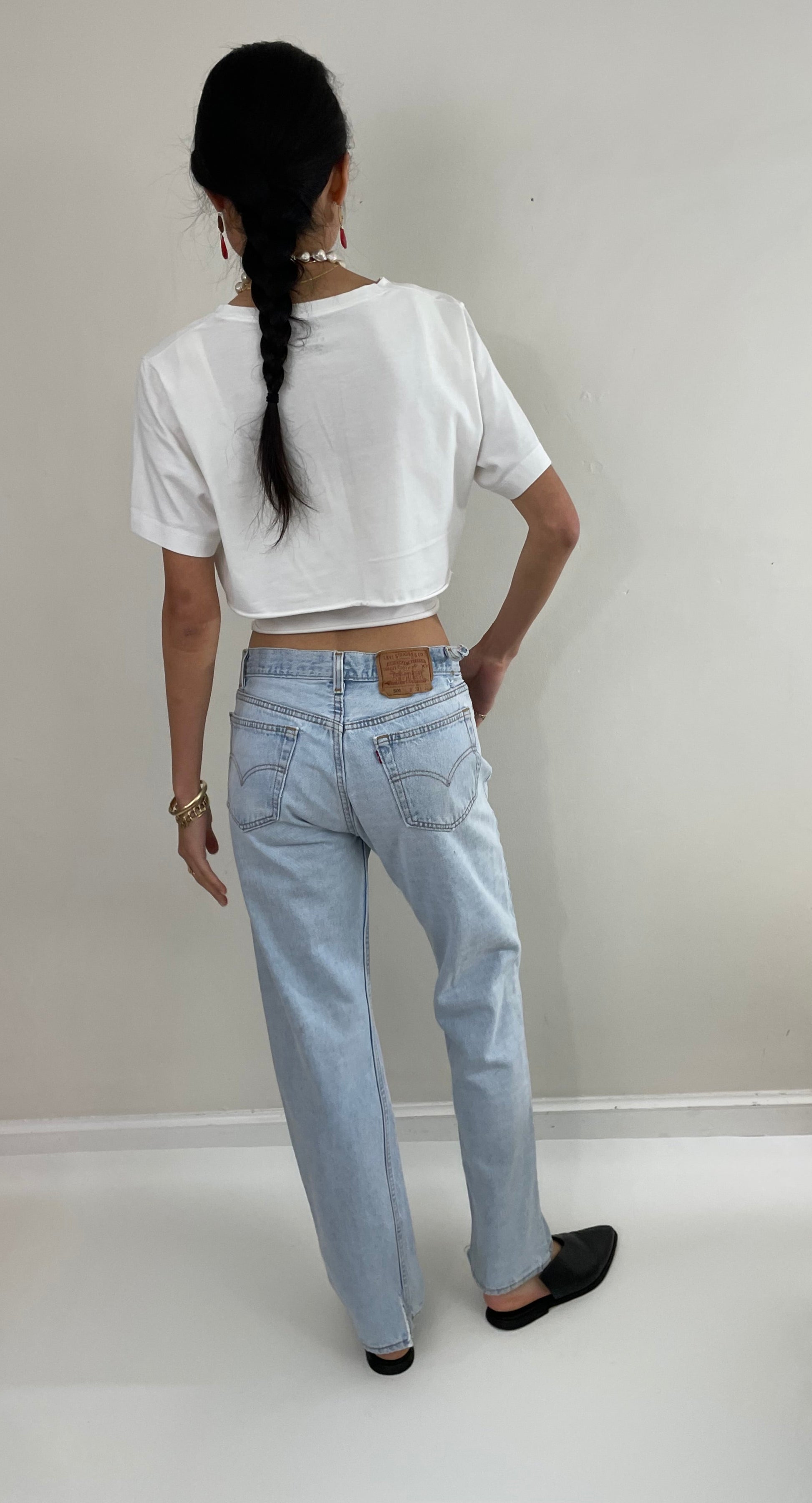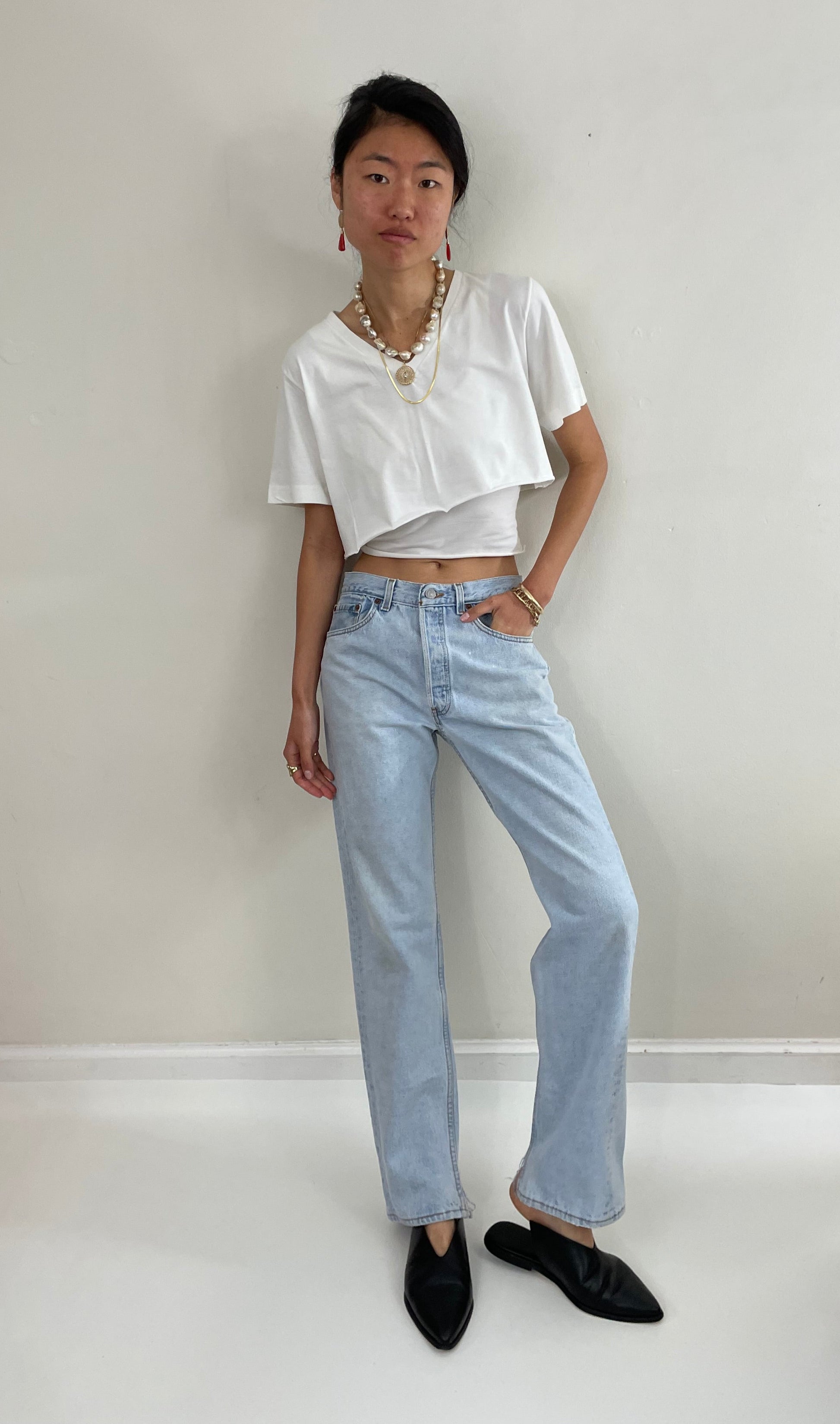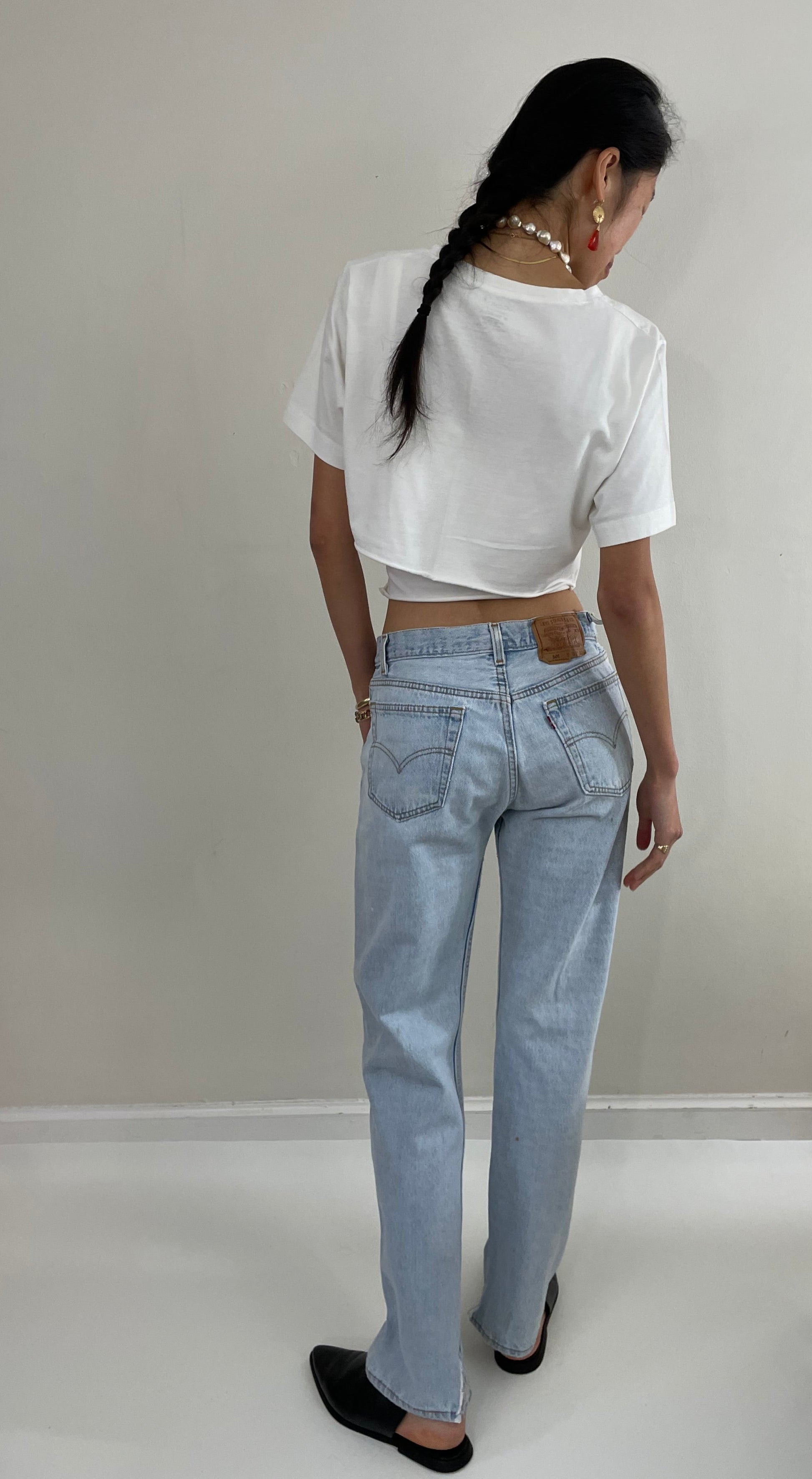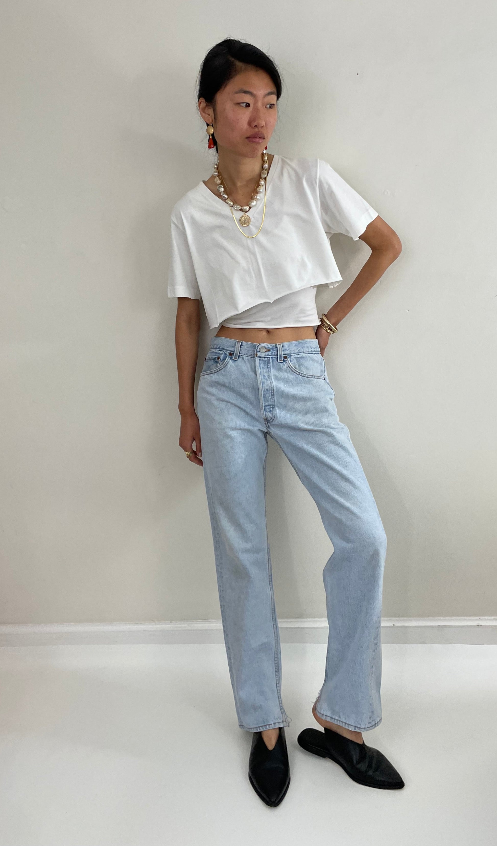 Vintage Levi's 501 button fly jeans featuring light wash and naturally faded patina.
