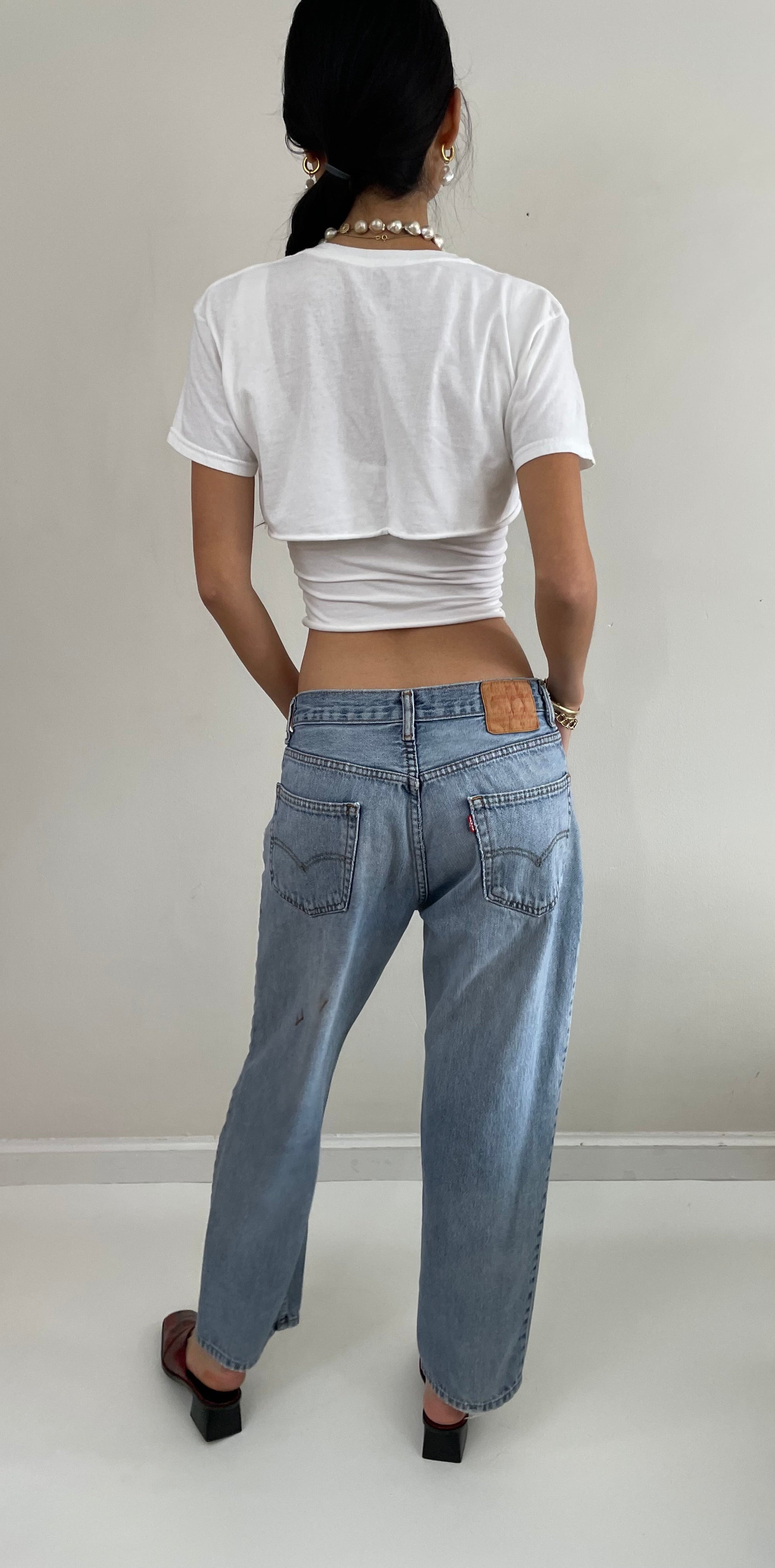30x28 Vintage Levi's 550 iconic jeans featuring zipper fly and buttery soft, faded, worn-in light wash finish and soft lightweight denim.