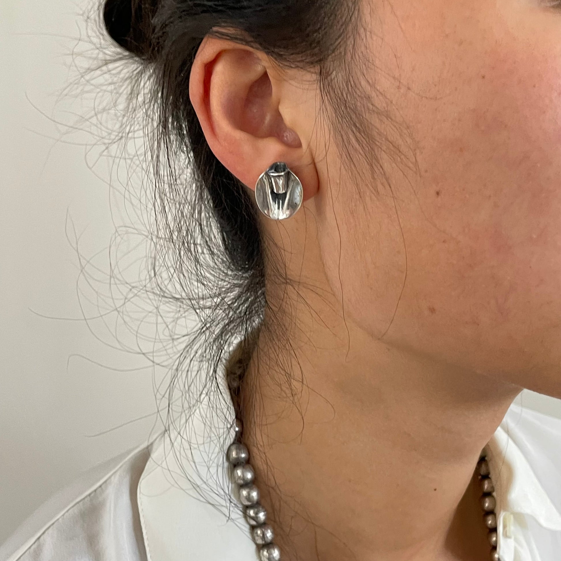 vintage 50s Scandinavian earrings | sterling silver 925 handcrafted modernist Nordic sculptural screw back earrings