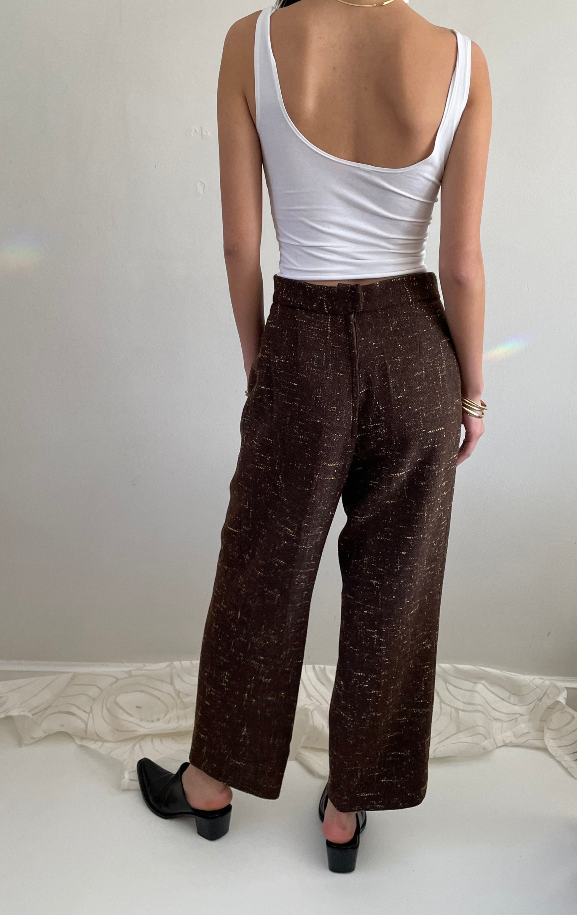 Vintage 90s handmade soft, wide leg speckled wool tweed pants.