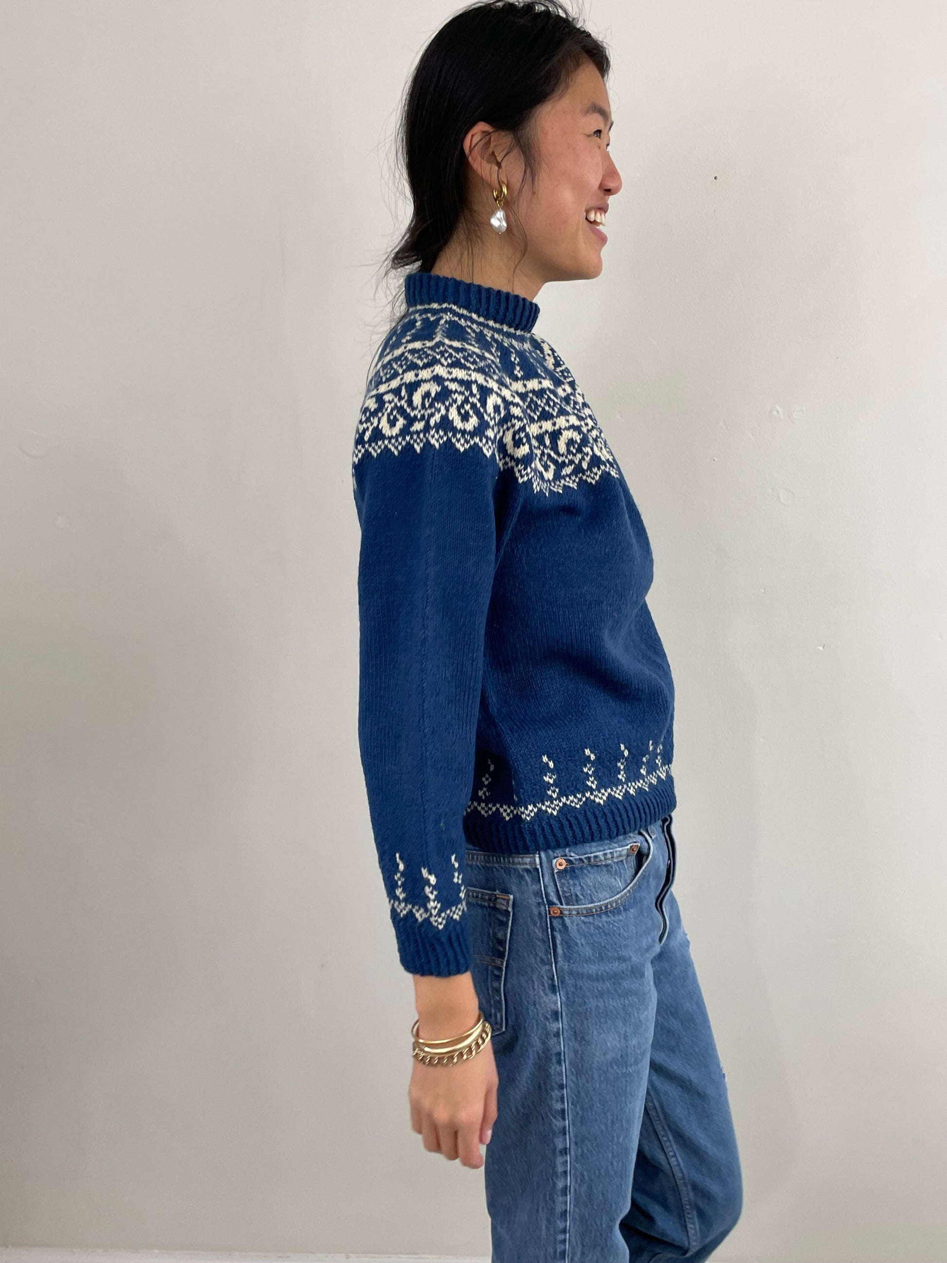 Vintage Hand Knit Swedish Fair Isle Wool Sweater Small