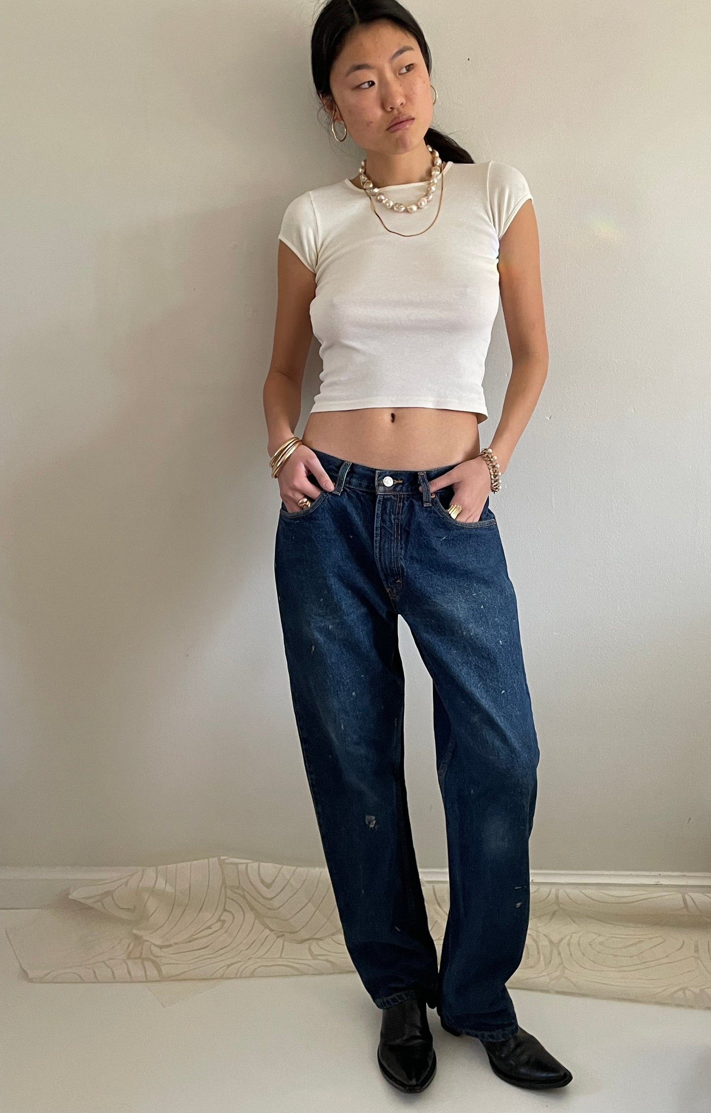 vintage Levi's 505 relaxed dark wash baggy wide leg zipper fly Levis jeans 32 x 32