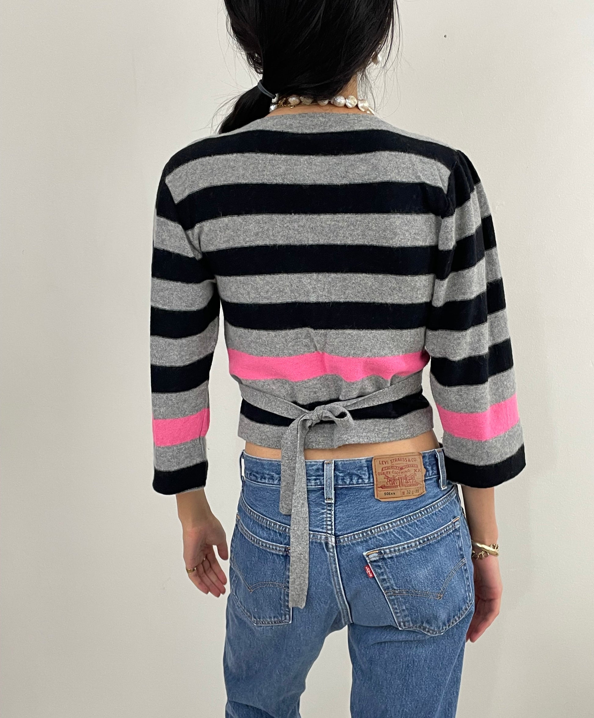 Vintage 80s Sonia Rykiel Striped Lambswool Cropped Sweater Italy